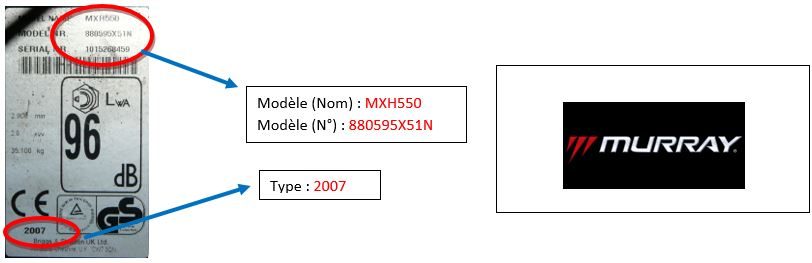 Identification du châssis d'une tondeuse à gazon (à la base du brancard sur le châssis)